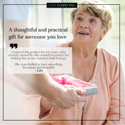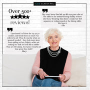 The Gift of Happiness and Dignity - Celebrate yourself or a loved one and feel and look your best while dining at home or in a restaurant. Classy Pal Clothing Protectors are perfect to help keep clothes clean during mealtime (dining), applying makeup or a commute to work. The Classy Pal adult bib can easily be washed and reused many times over and over again. Compliments are sure to come!