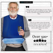 Designed in the USA - Each Classy Pal Clothing Protector was designed for convenience & portability right here in the USA with your loved one in mind. We have created two collections of adult bibs so your loved one can look & feel their best no matter the occasion: our printed plastic vinyl Wipe ‘n Wear collection is your everyday bib to wear at home; while our cloth embroidered Dress ‘n Dine collection is ideal for going out to a restaurant, meeting with friends, or when you want to dress up.